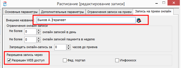 - При необходимости прописать другое имя Расписания в поле "Внешнее название",